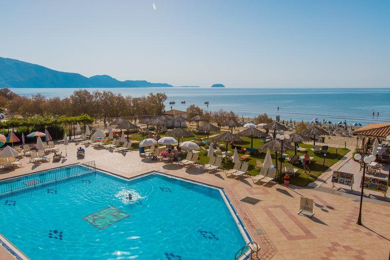 Obľúbený moderný hotelový komplex sa nachádza sa priamo pri krásnej pieskovej pláži neďaleko centra turistického letoviska Laganas s množstvom obchodíkov, barov a taverien. Hotel prešiel v roku 2022 čiastočnou rekonštrukciou.