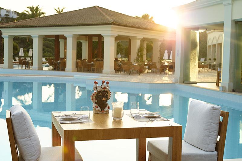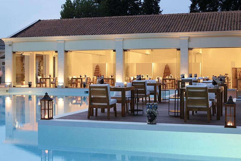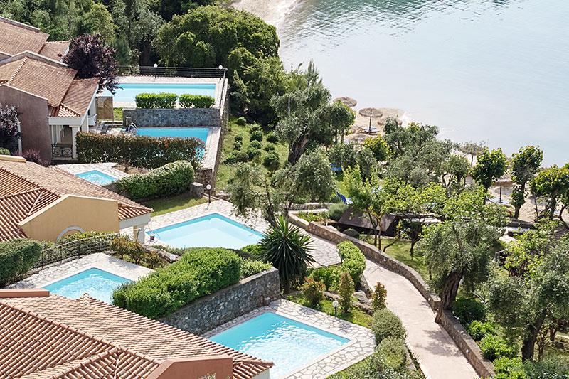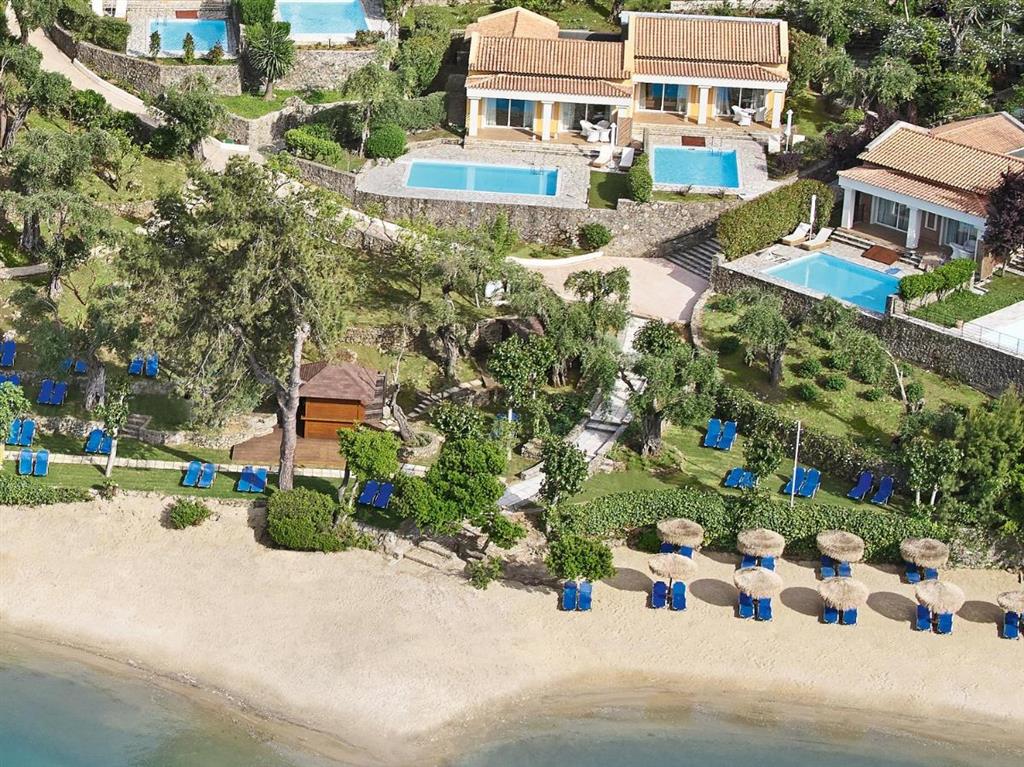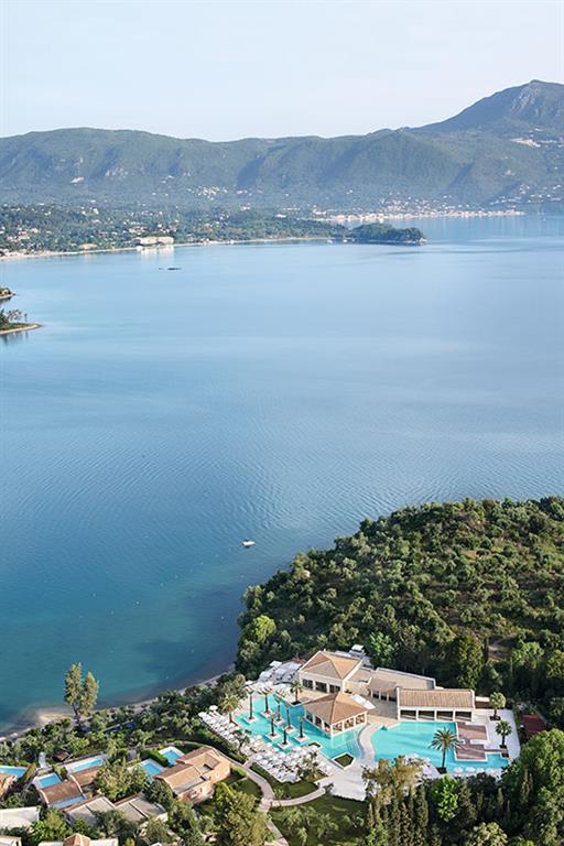Unikátny hotelový rezort, zaradený do prestížnej hotelovej siete Grecotel, sa nachádza na východnom pobreží ostrova pri romantickej zátoke s nádherným panoramatickým výhľadom na Iónske more.