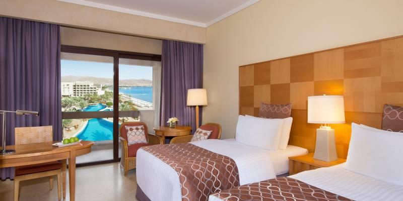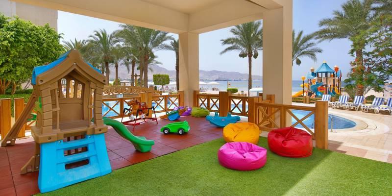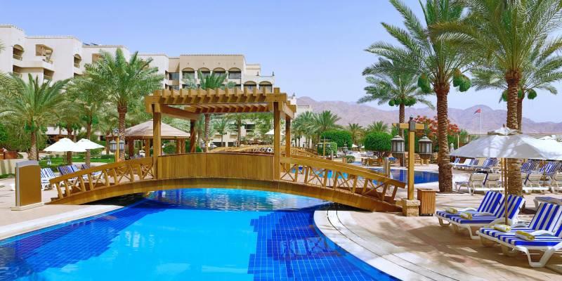 Luxusný hotelový rezort s príjemnou atmosférou sa nachádza priamo pri krásnej pieskovej pláži a v pešej dostupnosti od historického centra Aqaby.