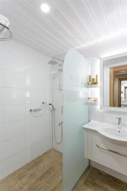 pekná súkromná pieskovo-kamienková pláž vzdialená od hotela 400 m • pláž od hotela oddeľuje miestna komunikácia • pozvoľný vstup do mora • bezplatný plážový servis • centrum vodných športov za poplatok