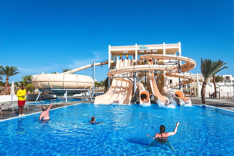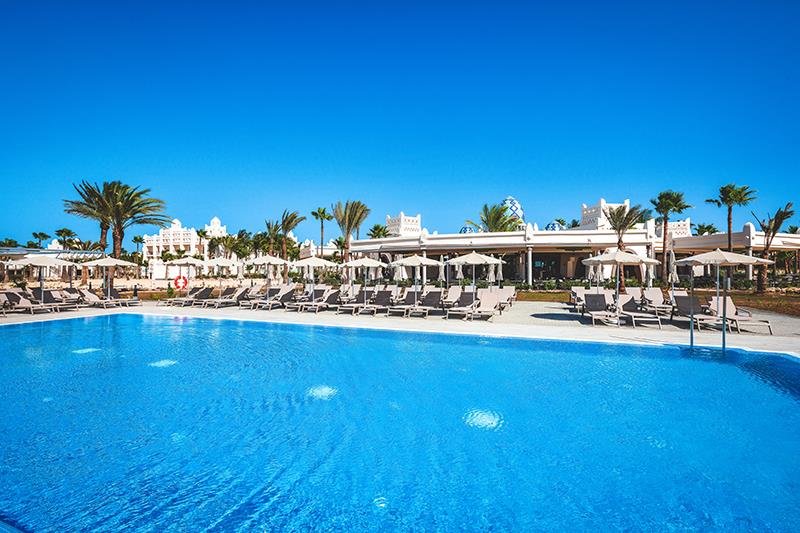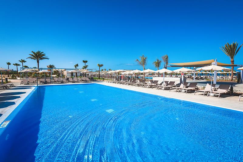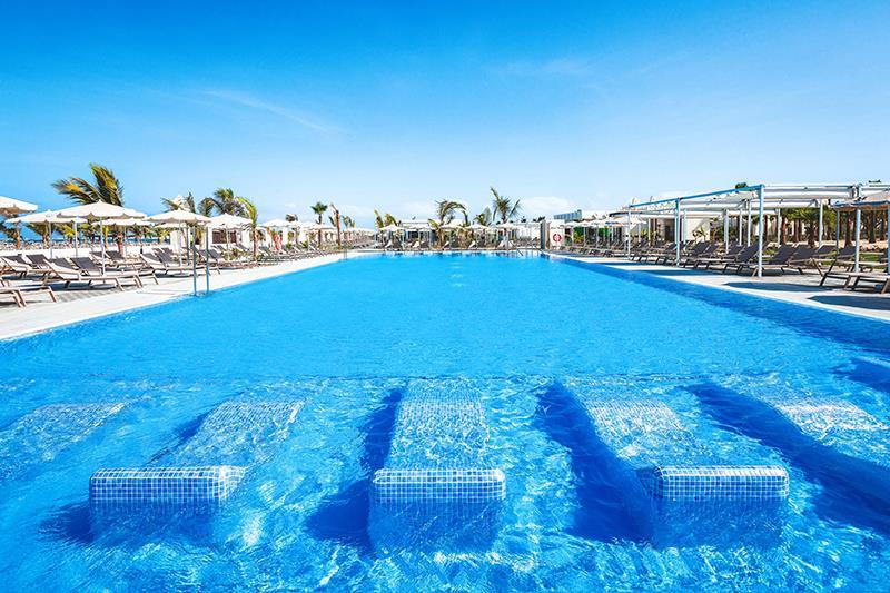 Luxusný hotelový komplex s unikátnou architektúrou leží priamo pri nádhernej širokej pláži pokrytej jemným bielym pieskom. Hotel len pre dospelých patriaci do prestížnej hotelovej siete Riu je postavený iba 8 km od hlavného mesta Sal Rei.