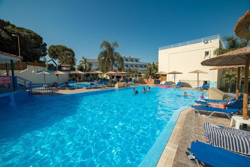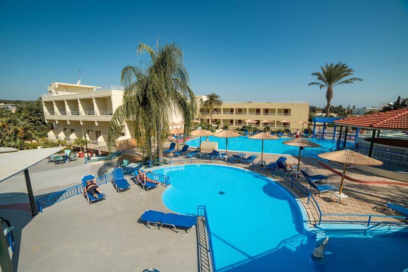 hlavná reštaurácia • bar pri bazéne • v susedstve hotela obchodíky so suvenírmi, grécke taverny a bary • pred hotelom zastávka autobusov do mesta Rodos • Wi-Fi pripojenie zdarma v lobby • bazén s ležadlami a slnečníkmi • detský bazén • detské ihrisko • animačný tím Klub Leto v termíne 30.6. – 5.9.2023